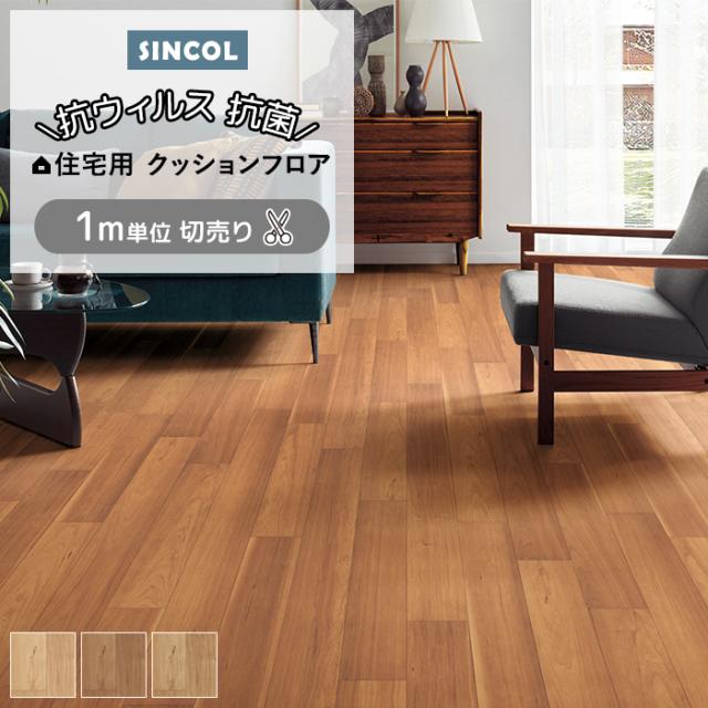 【202511_サンキュー配送対応不可のため掲載終了】シンコール クッションフロア (Sin) 切売り 約182cm幅(1mあたり) ワイドチェリー E1024〜1026 約1.8mm厚 抗ウィルス リノベーションシート リメイクシート クッションフロアマット CF フロアシート ポンリューム