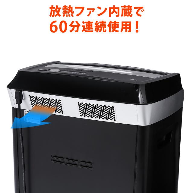 ●60分間の連続使用ができる電動シュレッダーです。●個人情報入りの書類やメディアを細断することで、ゴミ箱からの情報漏洩を防ぎます。