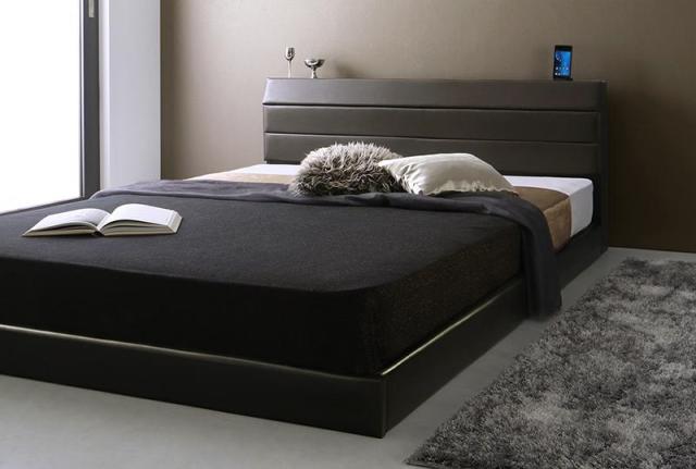 棚・コンセント付き レザーすのこベッド 【Ivan】イヴァン 【ボンネルコイルマットレス付き】 セミダブル 【フレーム色】ダークブラウン