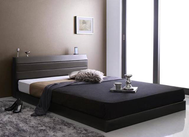 棚・コンセント付き レザーすのこベッド 【Ivan】イヴァン 【国産ポケットコイルマットレス付き】 シングル 【フレーム色】ダークブラウン