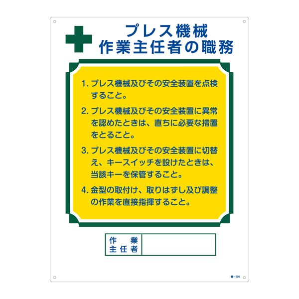 作業主任者の職務標識 プレス機械 作業主任者の職務 職-505 【北海道・沖縄・離島配送不可】