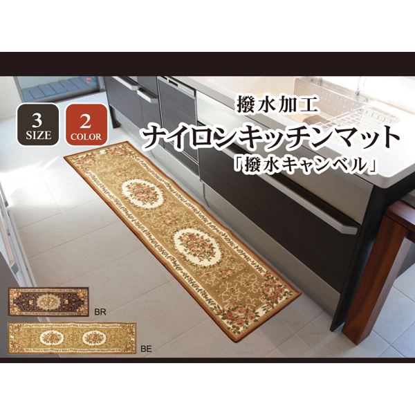ナイロン 花柄 キッチンマット 『撥水キャンベル』 ブラウン 約44×240cm 【北海道・沖縄・離島配送不可】