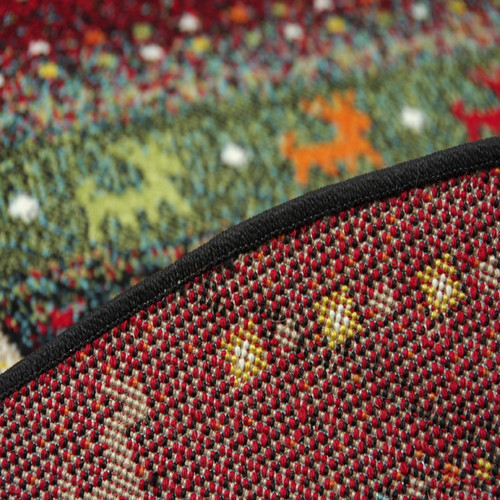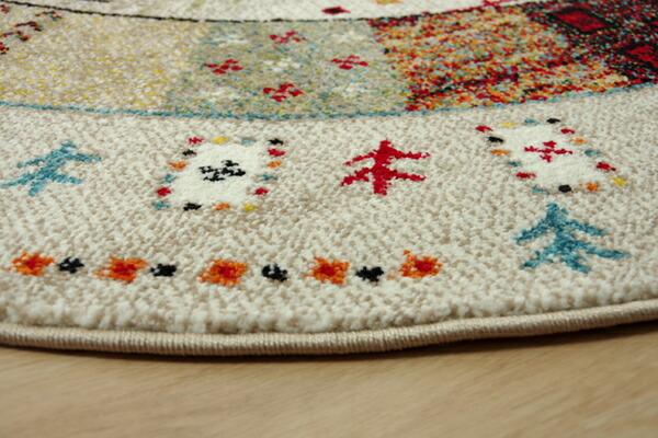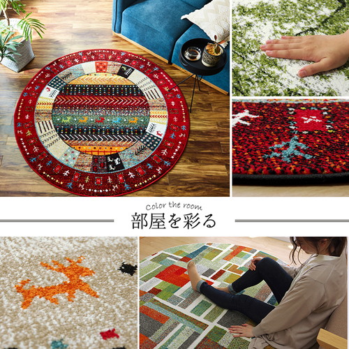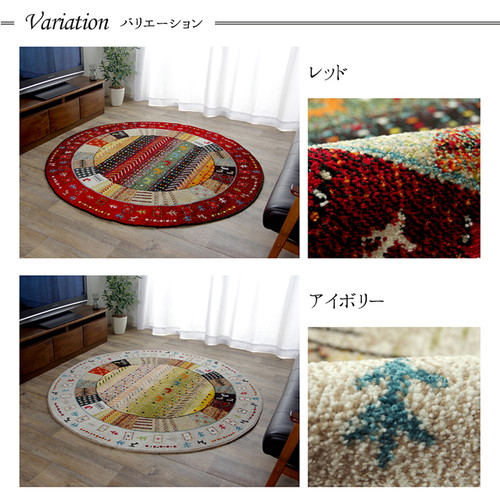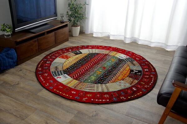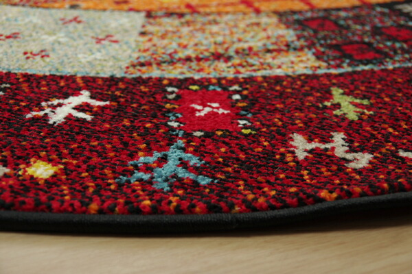 ギャッベ風 ラグマット/絨毯 〔レッド 直径約160cm〕 円形 トルコ製 高耐久性 ホットカーペット対応 〔リビング〕 【北海道・沖縄・離島配送不可】