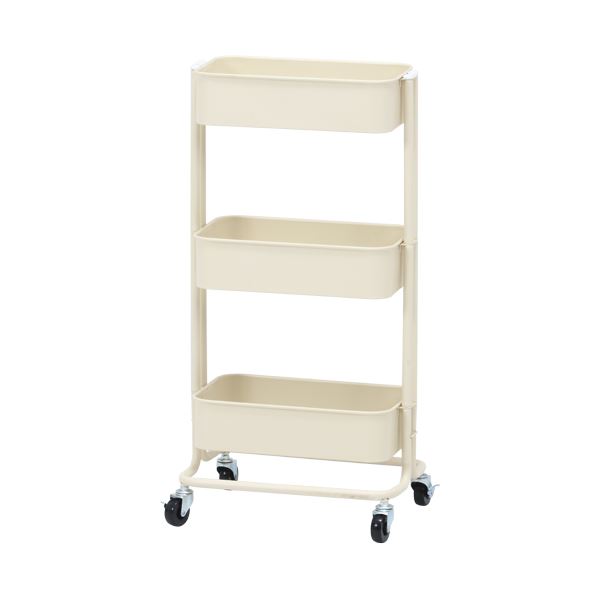 キッチンワゴン/キッチン収納 〔バスケット3段 スリム アイボリー〕 幅39cm スチール キャスター付き 〔組立品〕 【北海道・沖縄・離島配送不可】