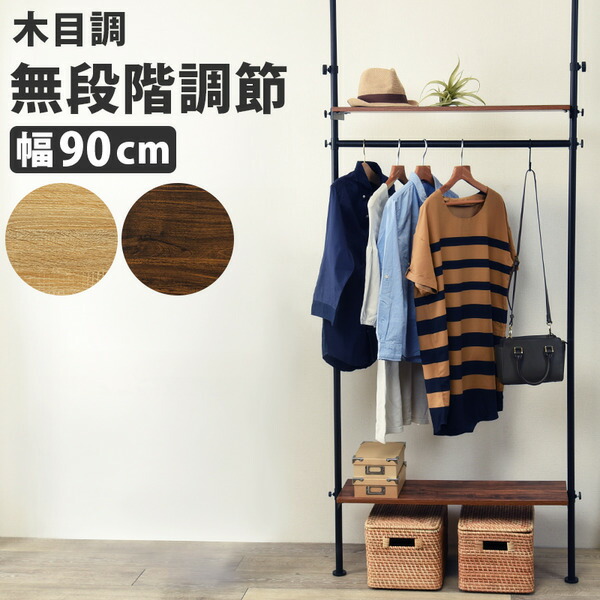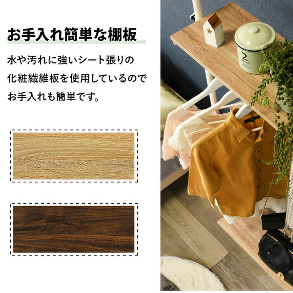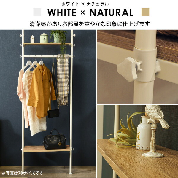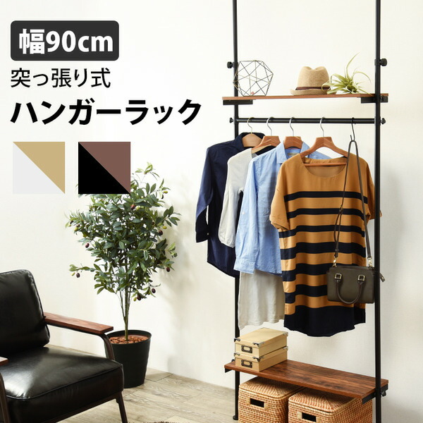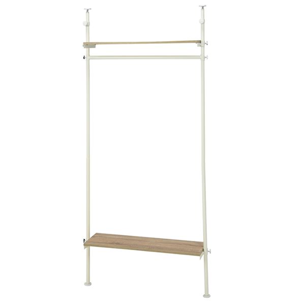 突っ張り ハンガーラック/ハンガーポール 〔ホワイト〕 幅90×奥行24×高さ187〜264cm スチール 高さ調節 棚板2枚 組立式 【北海道・沖縄・離島配送不可】