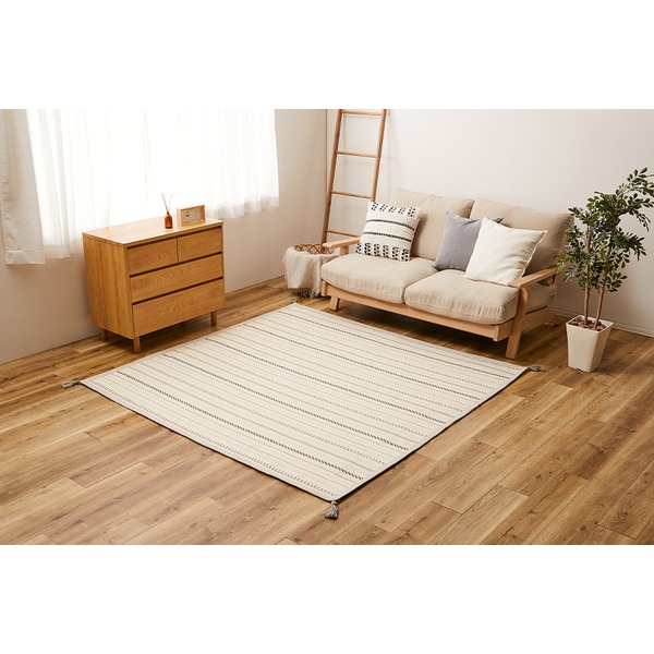 さらっとした踏み心地とインド綿ならではの素朴な仕上がりが魅力のラグ。四隅に付いたフサ(タッセル)でおしゃれ度アップ!吸湿発乾性が良く年中使えるタッチ感もインド綿の人気の秘密です。お客様のご要望に応えて、すべり止め付きを開発しました!