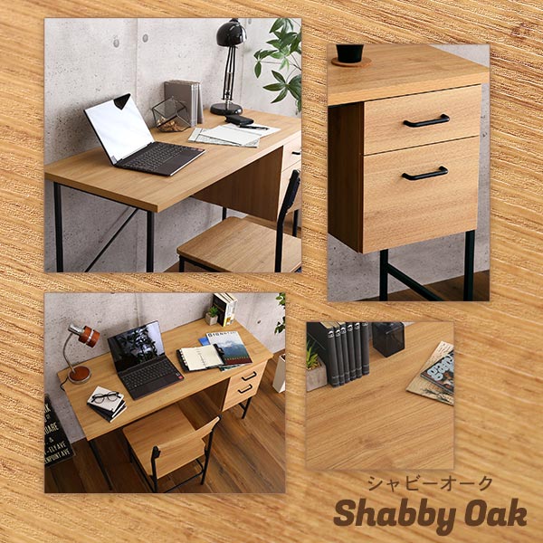ヴィンテージ風引き出し付きデスク&チェアセットシャビーオーク 組立品 【北海道・沖縄・離島配送不可】