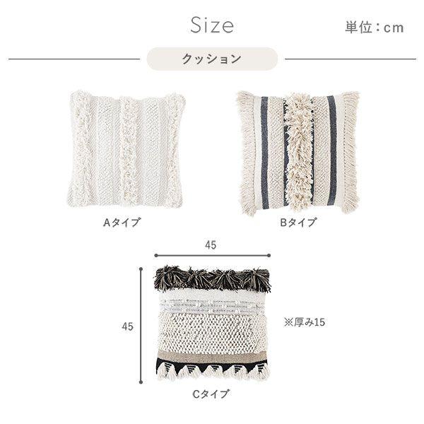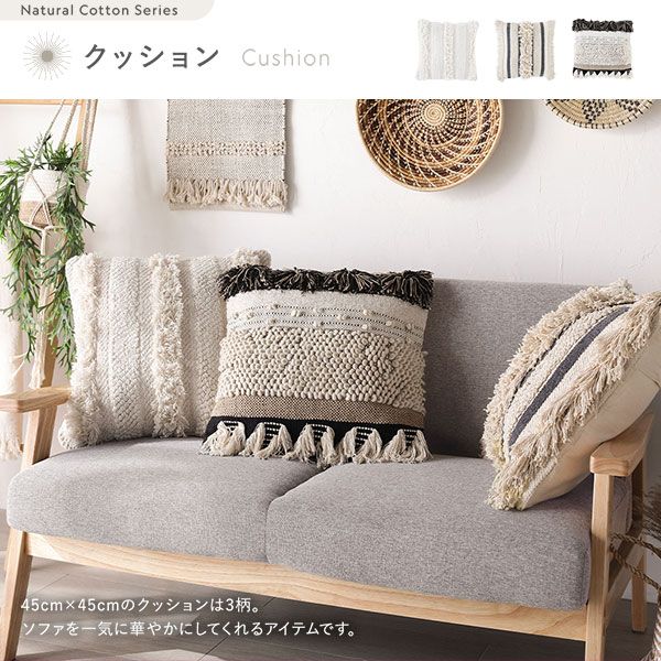 45cm×45cmのクッションは3柄。