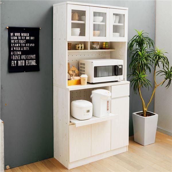 おしゃれなキッチンボード 幅90 ホワイトウォッシュ 組立品 【北海道・沖縄・離島配送不可】