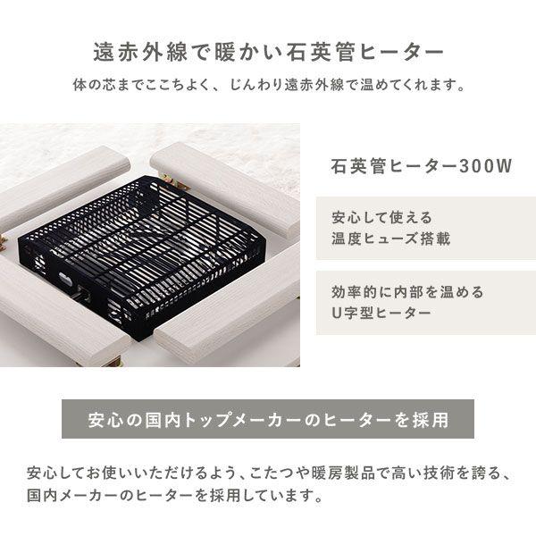 安心してお使いいただけるよう、こたつや暖房製品で高い技術を誇る、国内メーカーのヒーターを採用しています。