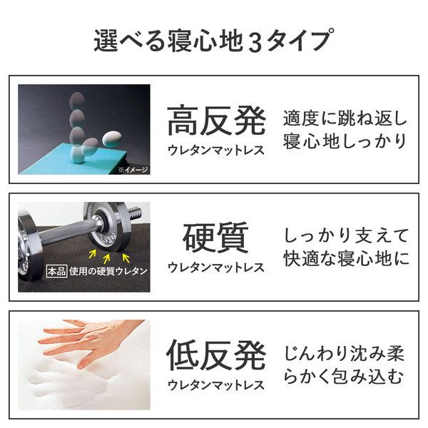 ●本商品は仕入元より配送となるため、沖縄・離島への配送はできません。 ■ サイズ(cm)/ セミシングル:幅86×奥行196×高さ63(マット面高さ45)、マットサイズ:幅77×奥行196×厚さ11 シングル:幅99×奥行196×高さ63(マット面高さ45)、マットサイズ:幅90×奥行196×厚さ11 セミダブル:幅119×奥行196×高さ63(マット面高さ45)、マットサイズ:幅111×奥行196×厚さ11 ■ 品質/フレーム:スチール(粉体塗装)、マット張地:花柄:ポリエステル、綿、レーヨン、ブラウン:ポリエステル、マット中材:硬質:硬質ウレタン、チップウレタン、固わた、低反発:低反発ウレタン、チップウレタン、固わた、高反発:高反発ウレタン、チップウレタン、固わた ● 組立時間/約30分 ※ 大人2人で組立作業にかかる時間の目安です。 【特記事項】 画像のカラー・サイズとは異なる場合がござ...