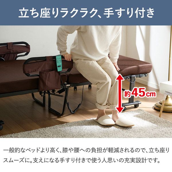 組立簡単 寝心地が選べる電動ベッド 高反発シングル ブラウン 組立品 【北海道・沖縄・離島配送不可】