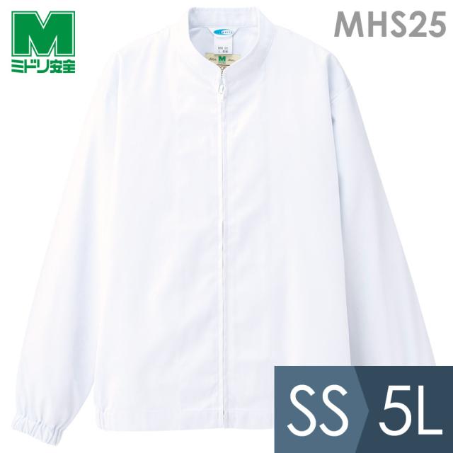 ミドリ安全 食品産業向け作業服 通年 白衣 男女共用 長袖ブルゾン MHS25上 ホワイト SS〜5L