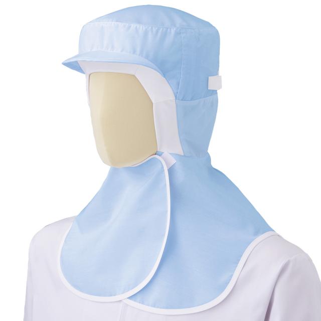 ミドリ安全 食品産業向け作業帽 フード (ツバ付・マスク掛け・面ファスナー) SH17B ブルー フリー