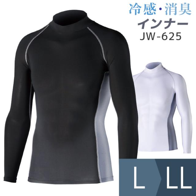 おたふく手袋 作業服 冷感インナー 長袖ハイネックシャツ JW-625 ブラック ホワイト L/LL