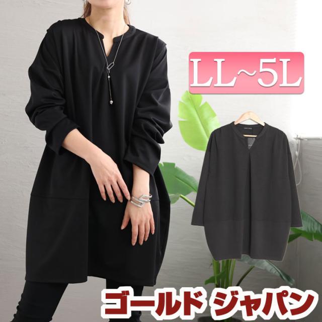 冬新作 大きいサイズ レディース チュニック コクーン切替チュニック 長袖チュニック 長袖 長そで ロング コクーン タック ドロップショルダー シャツ スキッパー キーネック バルーン ドルマン 伸縮 無地 切替え 春服 秋服 LL 2L 3L 4L 5L ブラック 黒 ゴールドジャパン