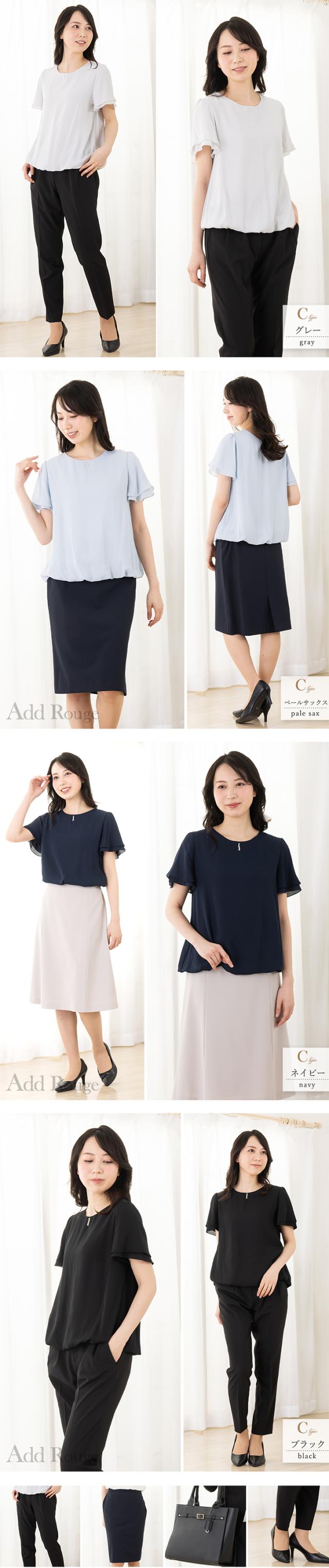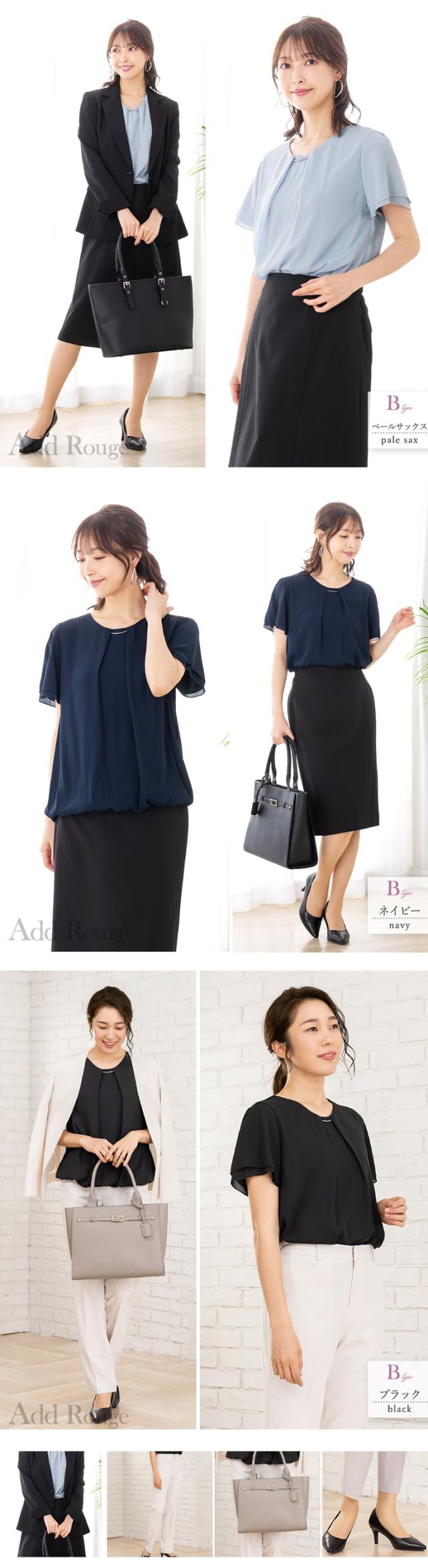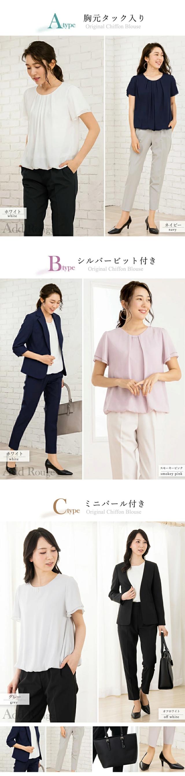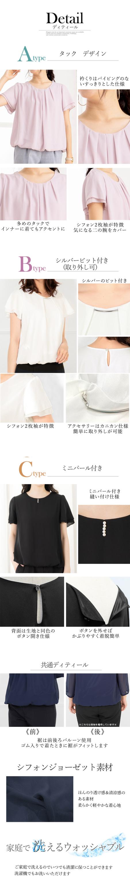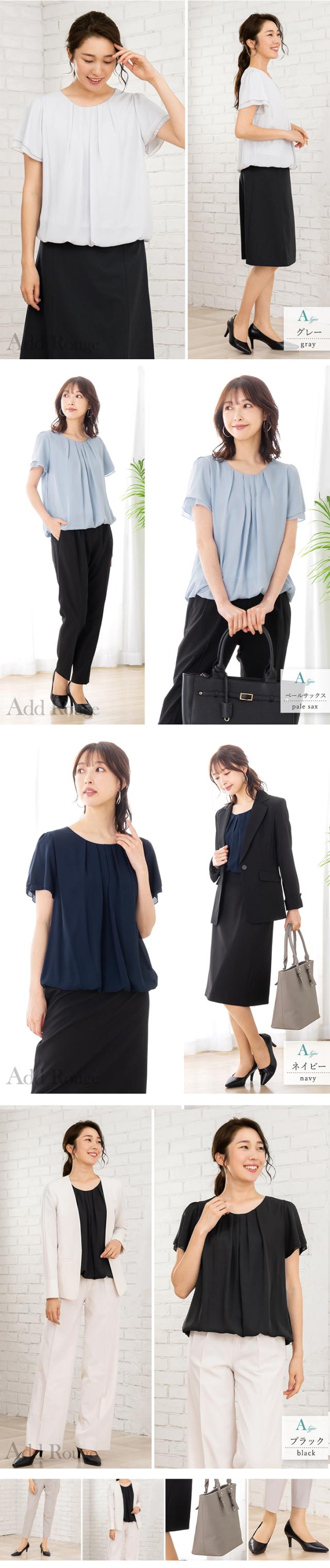【メール便送料無料】シフォン ママ ブラウス レディース スーツ インナー 半袖 春 夏 ビジネス オフィス 無地 ラウンドネック 体型カバー 大きいサイズ レディースブラウス フォーマル バルーン b1146-135494 [M便 1/2]