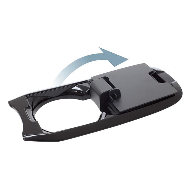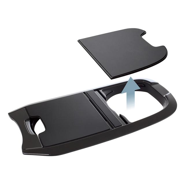●トレイ部を開くと車両のカップホルダーが使用できる、開閉タイプのトレイ。