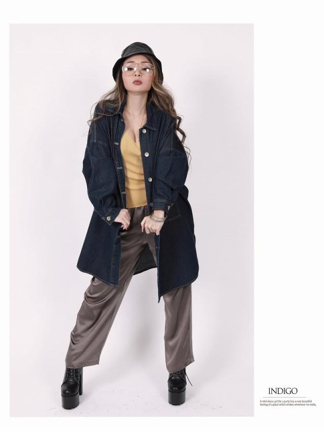 ☆ゆったりとしたオーバーサイズなシルエットのデニムシャツは、お尻まですっぽりと隠れるサイズで体型カバーにも◎