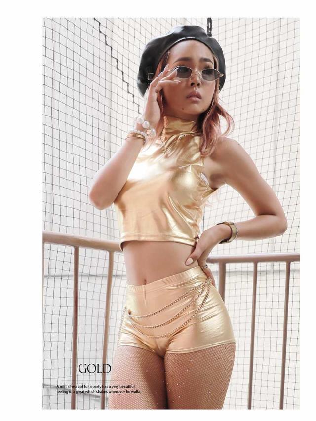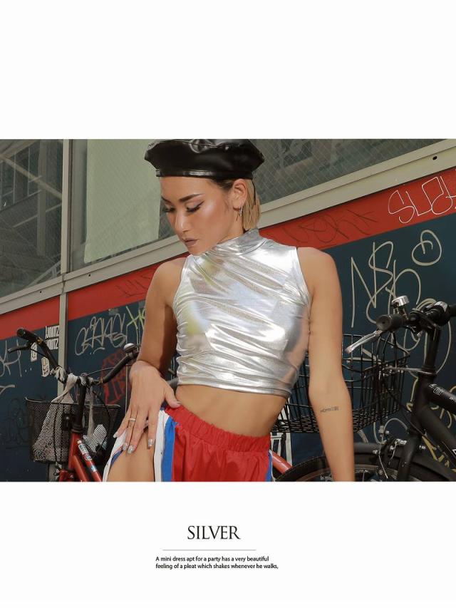 キャミソール・タンクトップ bombshell ハイネック メタリック メタル ショ-ト丈