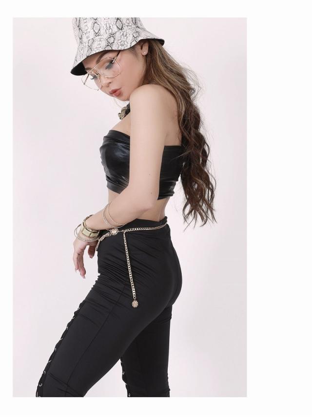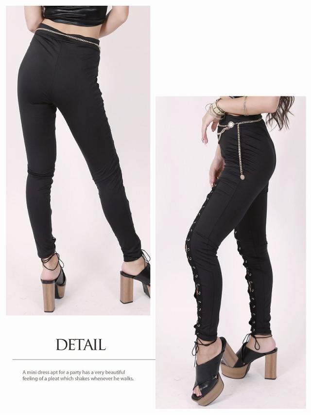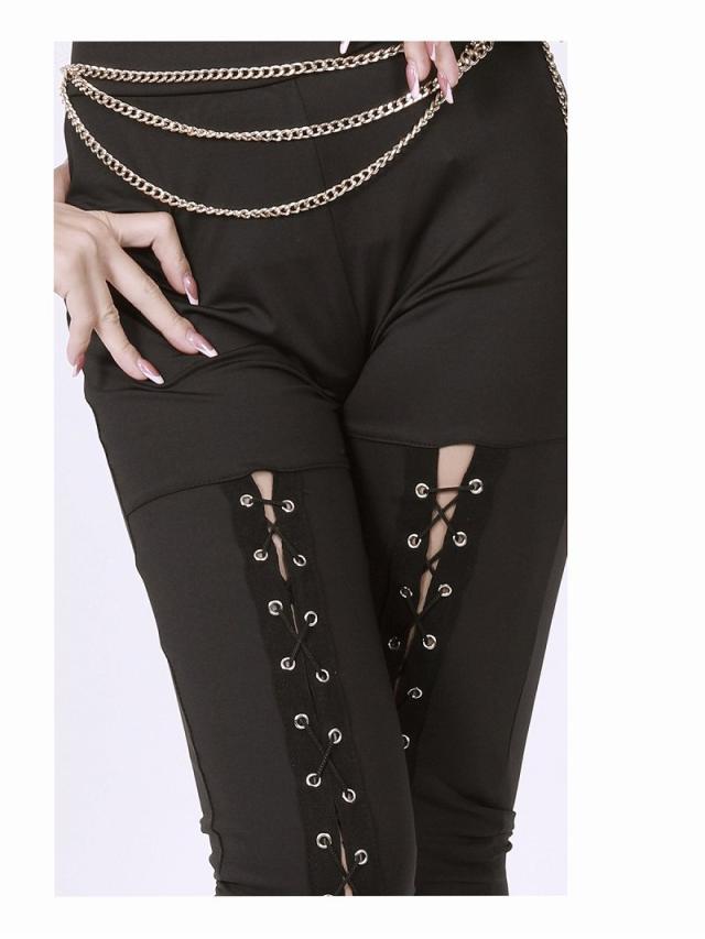 ☆フロントの編み上げで脚長効果&ヘルシーなセクシーさ爆上げ!ダンサー必見のインポートストレッチレースアップレギンス。