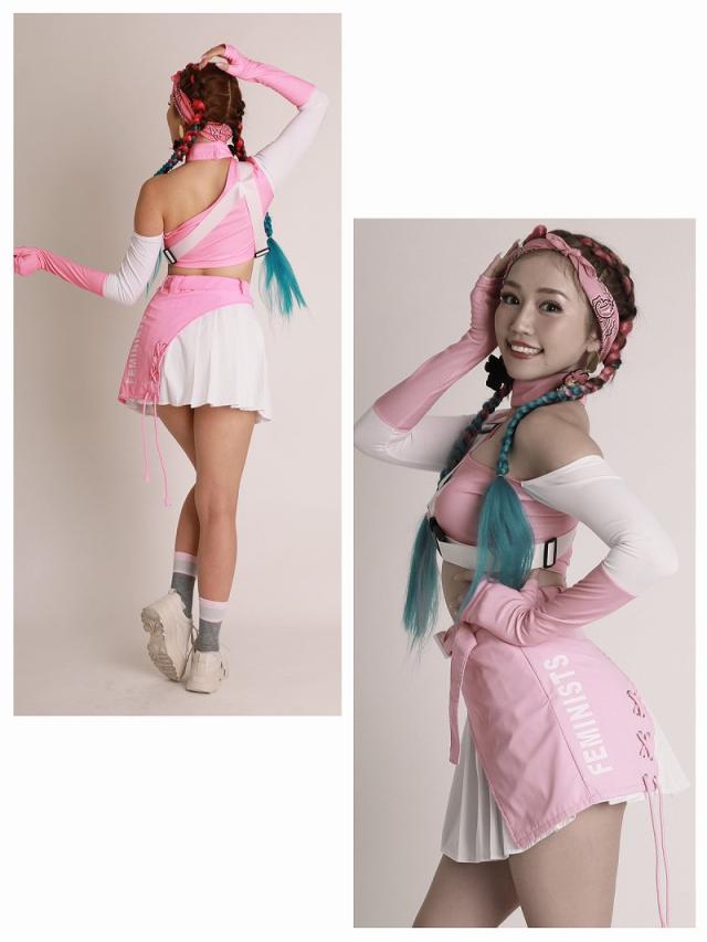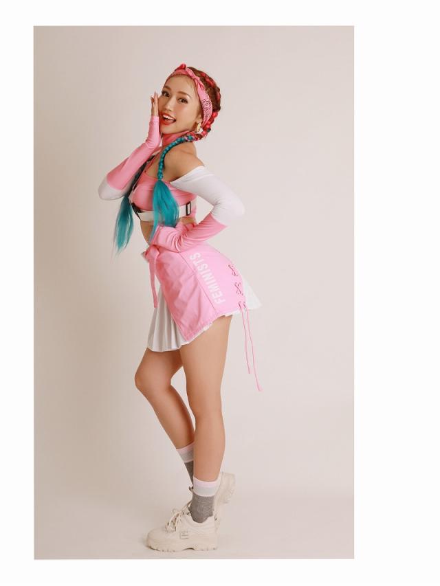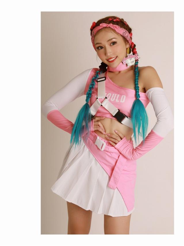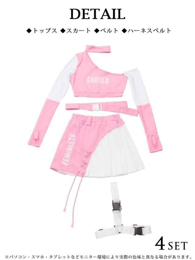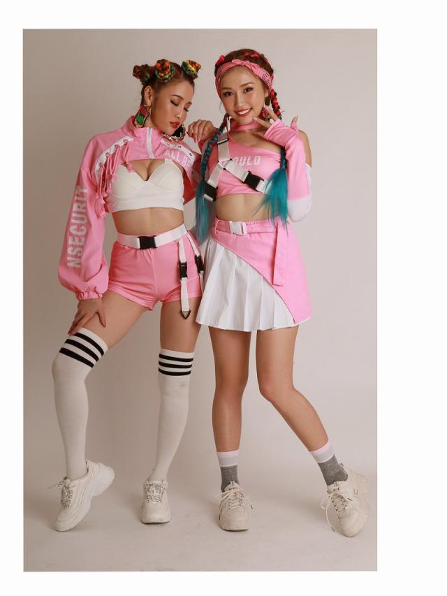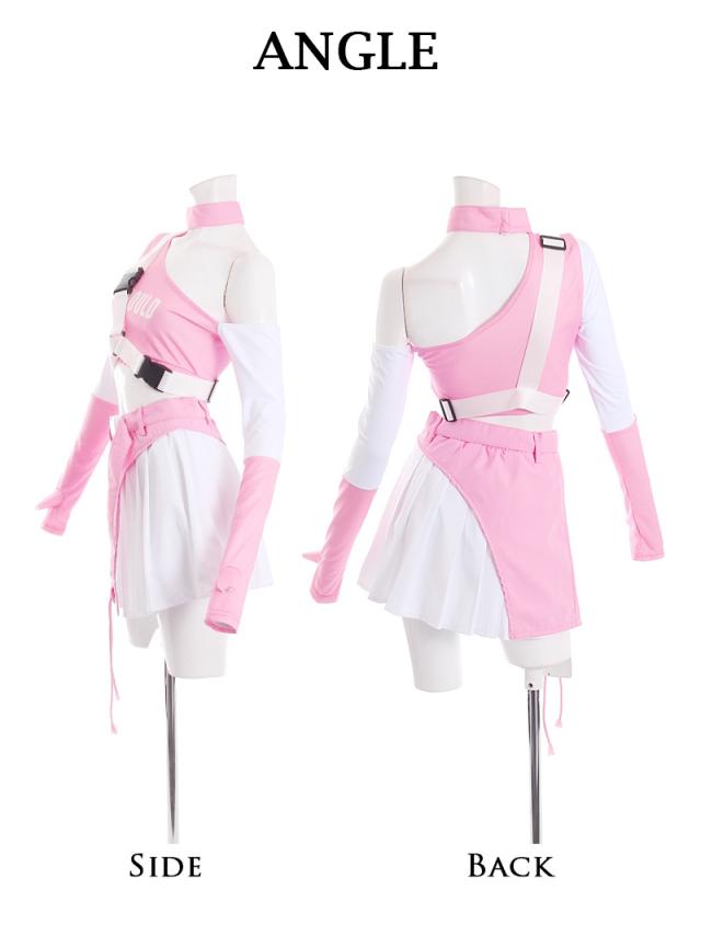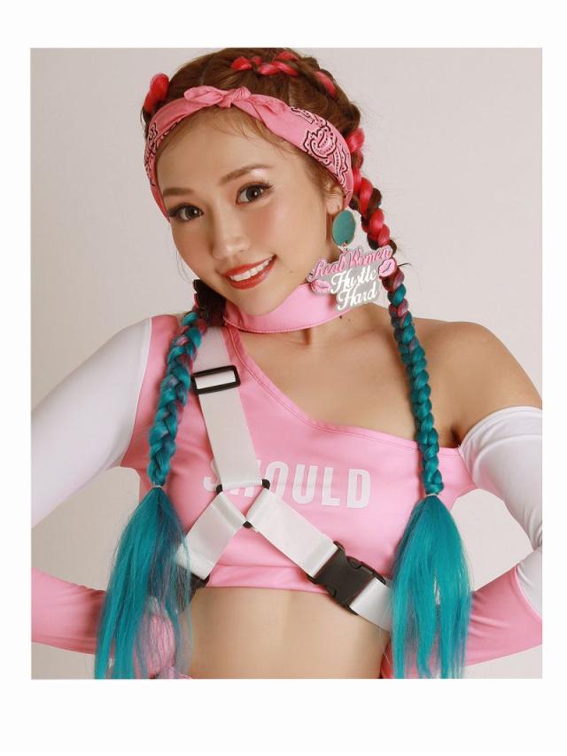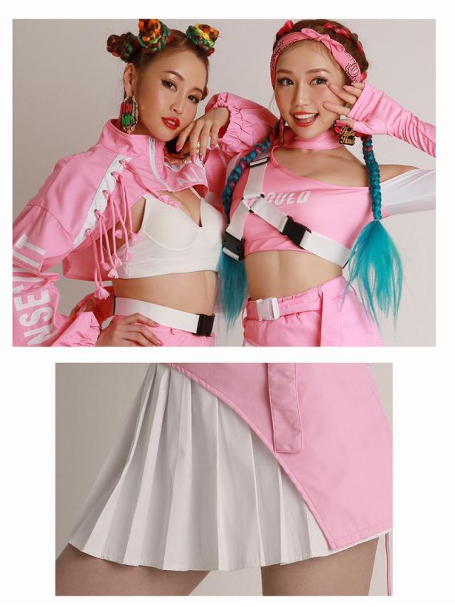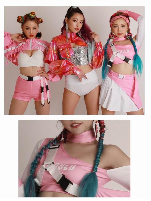 ☆キュートなピンクのバイカラーのダンサーコーデに付属のハーネスバックルベルトを合わせれば、スポーティMIXの個性派ダンス衣装が完成する4点セット!