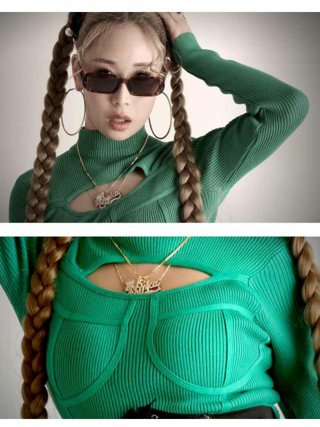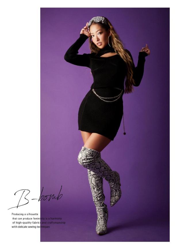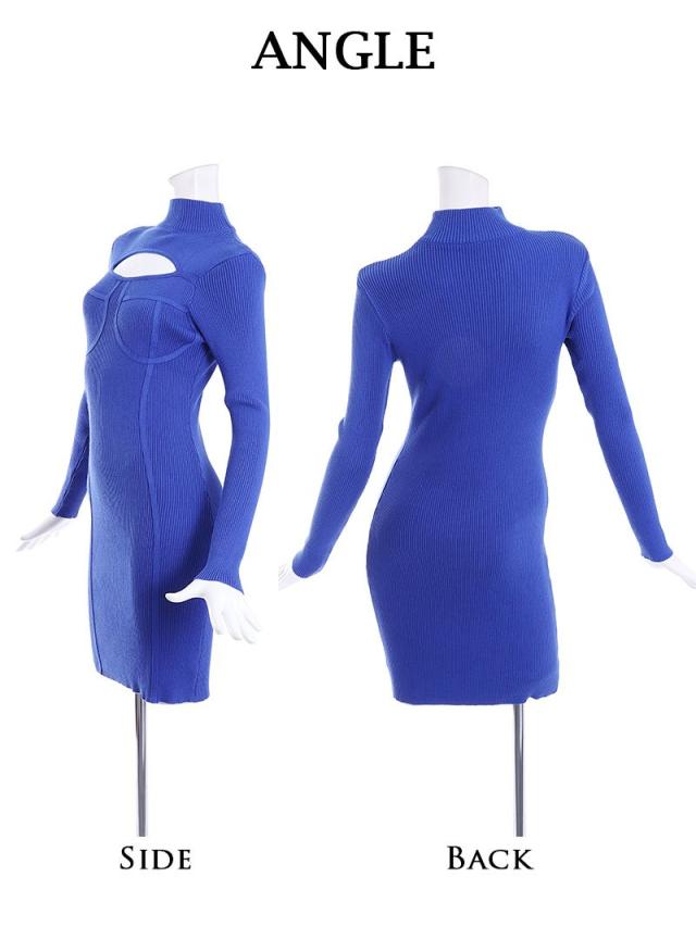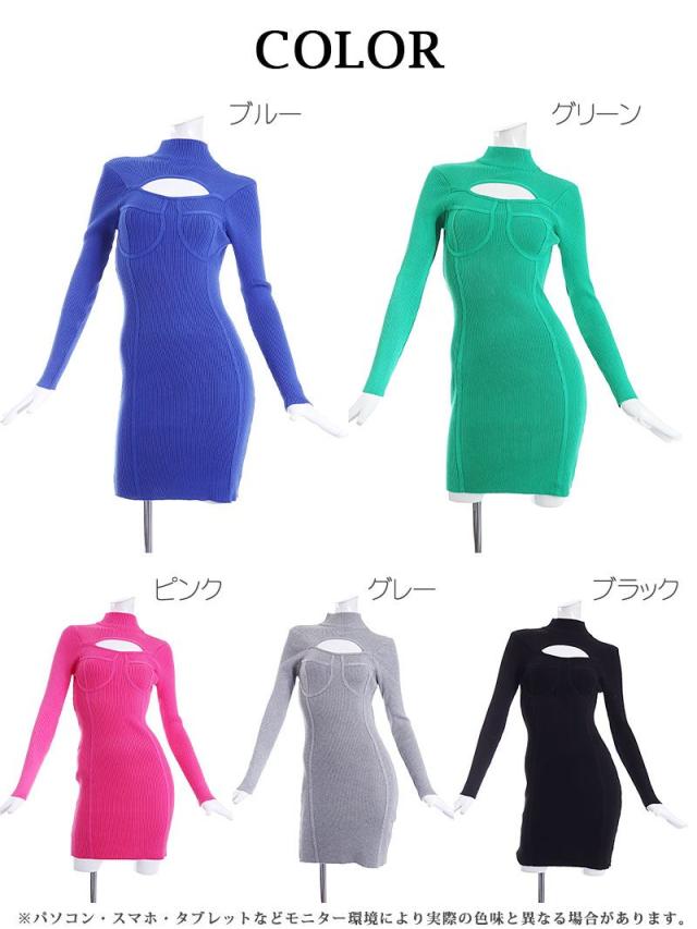 ワンピース Bbomb 長袖 リブニット オ-プンバスト ハイネック