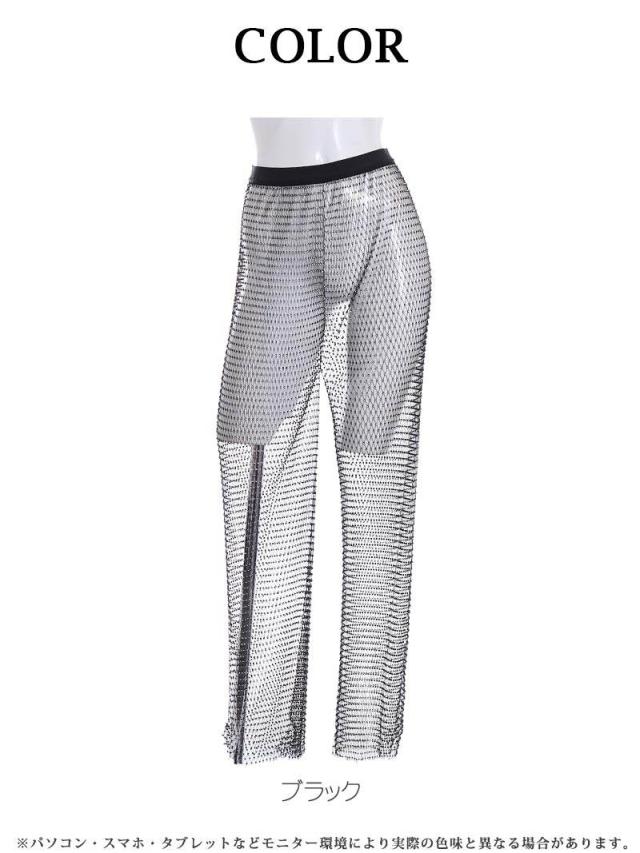 ボトムス bombshell ラインストーン メッシュ シ-スル- ワイドパンツ