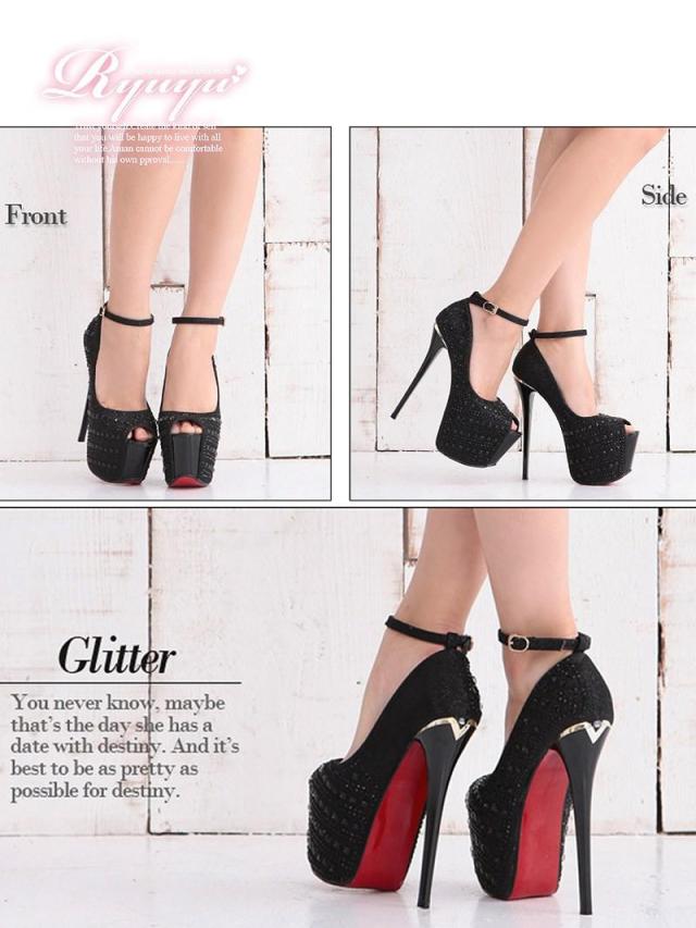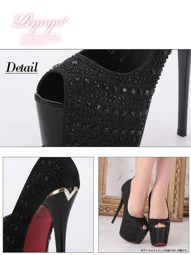 キャバパンプス Ryuyu オープントゥパンプス アンクルストラップ キャバクラ 16cmヒール 美脚 キャバ パンプス キャ