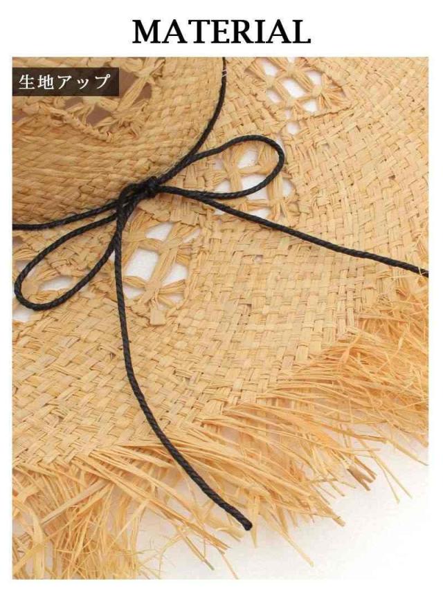 ☆紐リボンデザインでフェミニンなイメージがプラスされたつば広めのストローハットは夏の定番アイテム♪