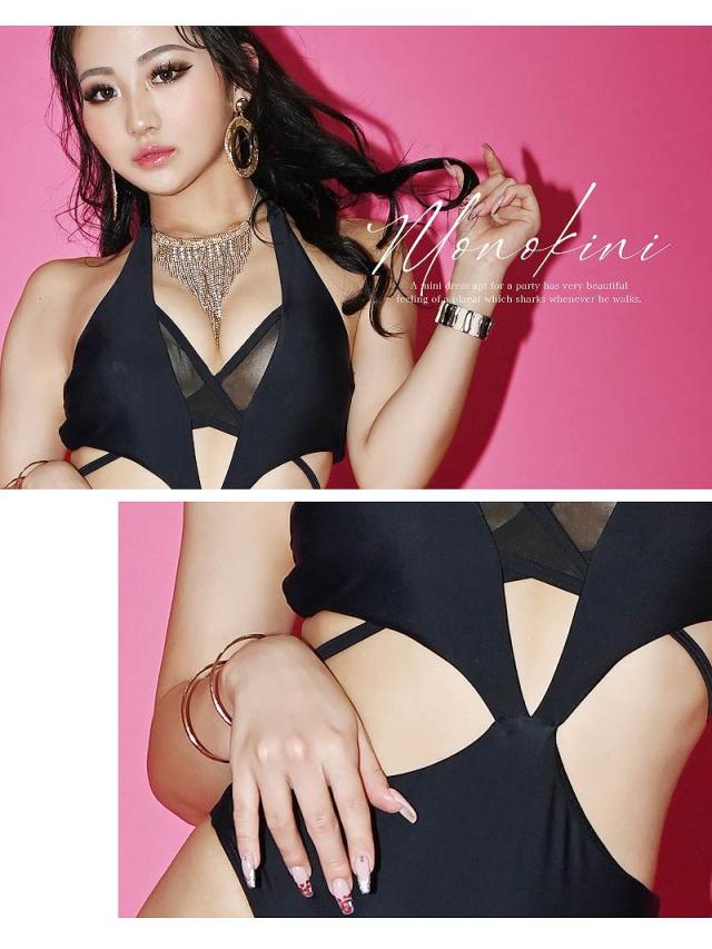 予約販売 キャバ水着 Ryuyu セクシー エロ ホルターネック ブラック ワンカラー 水着 ビキニ レディース レディース水