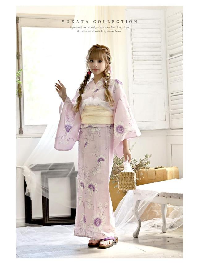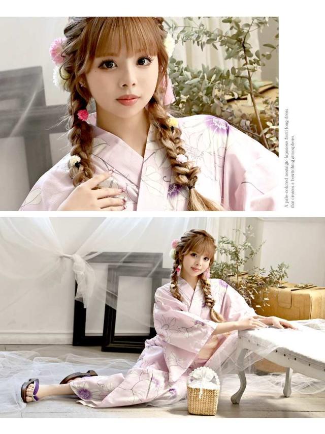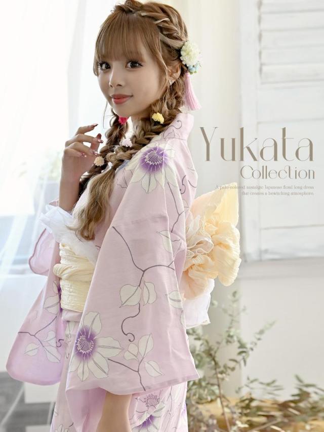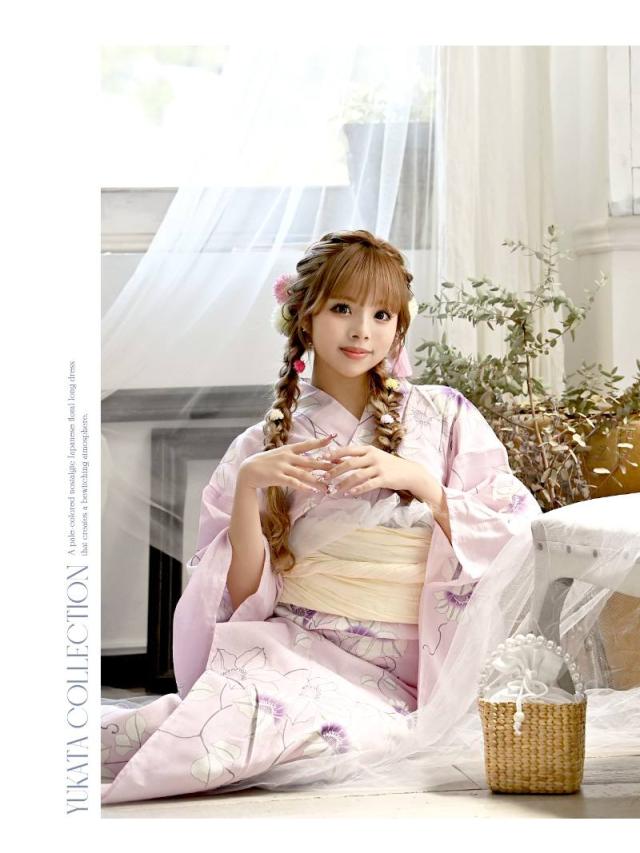 ☆柔らかな雰囲気のピンク、パープルの色味と女の子らしい花柄が大人可愛く着こなせる浴衣♪