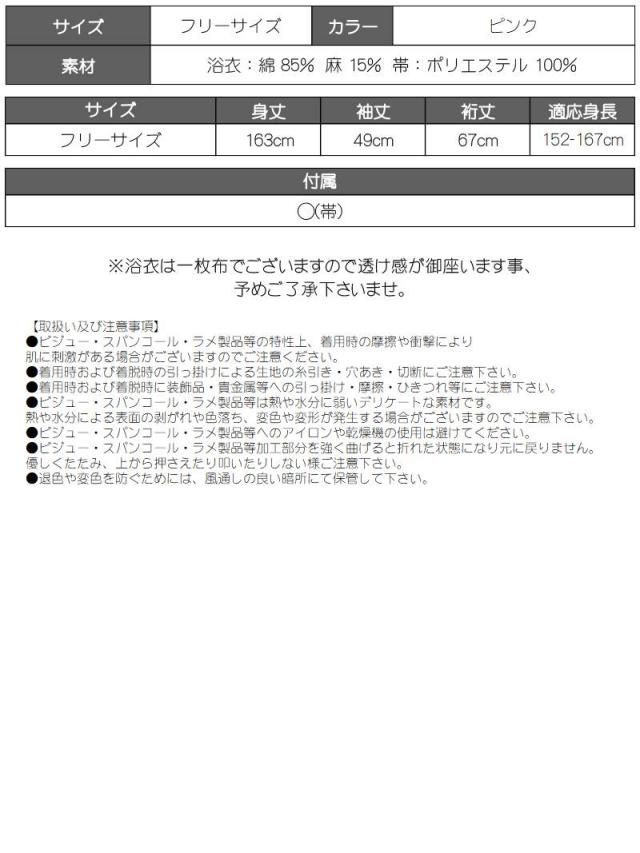 浴衣:綿85%、麻15%、帯:ポリエステル100%