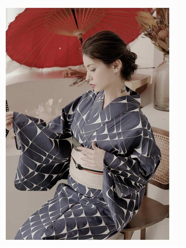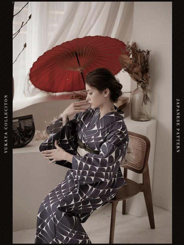 ☆落ち着いた雰囲気が凛としたたたずまいを醸し出しシックに仕上げたレディース浴衣2点セット。