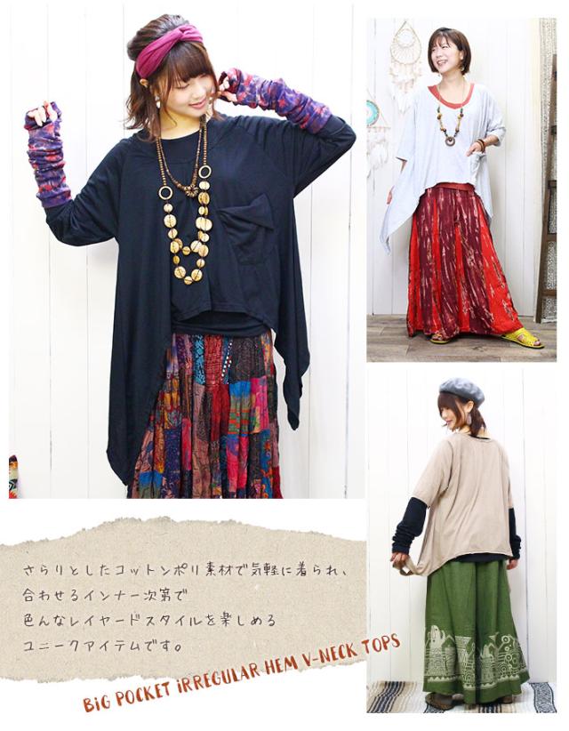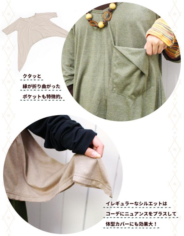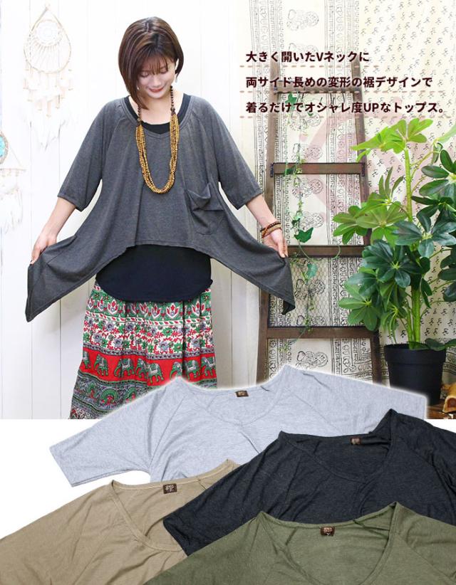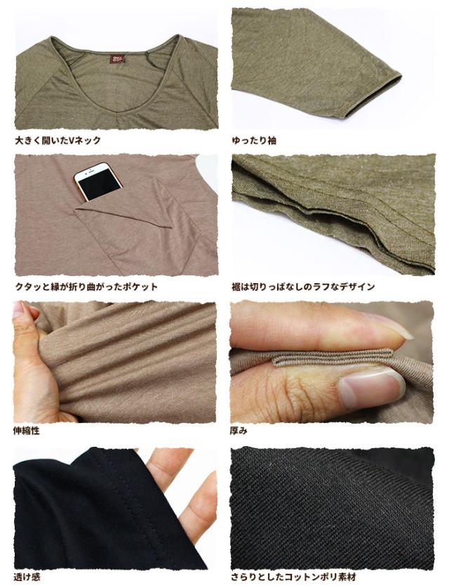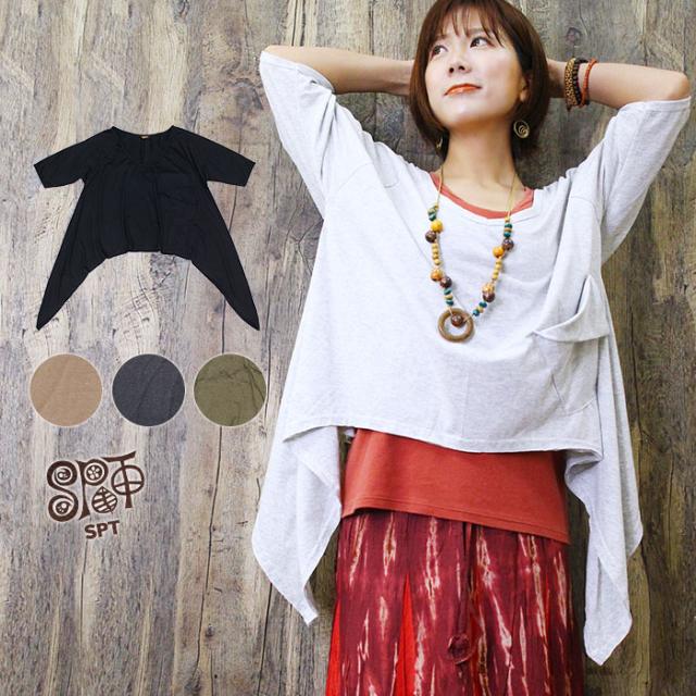 【メール便OK】 プルオーバー Vネック カットソー レディース 【SPT】ビッグポケットイレギュラーヘムVネックトップス