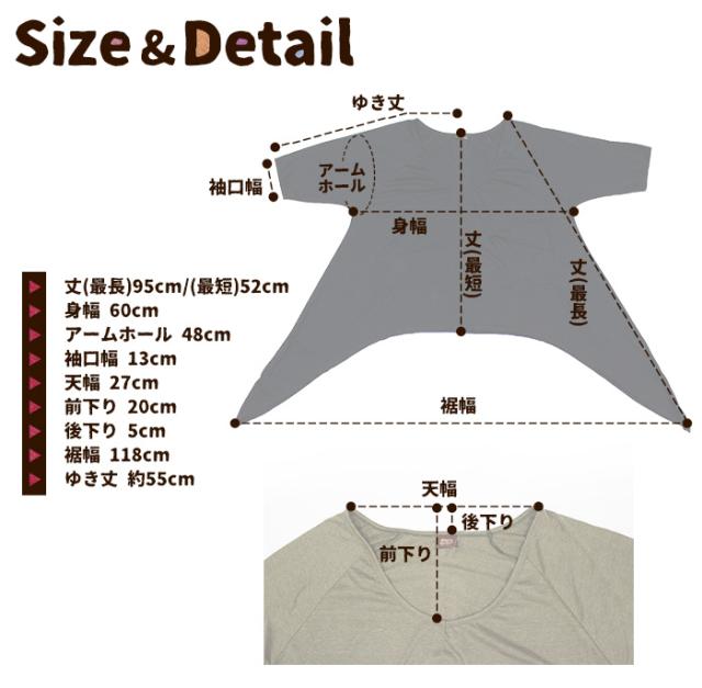 丈(最長)95cm/(最短)52cm 身幅60cm 裄丈約55cm アームホール48cm 袖口幅13cm 天幅27cm 前下り20cm 後下り5cm 裾幅118cm
