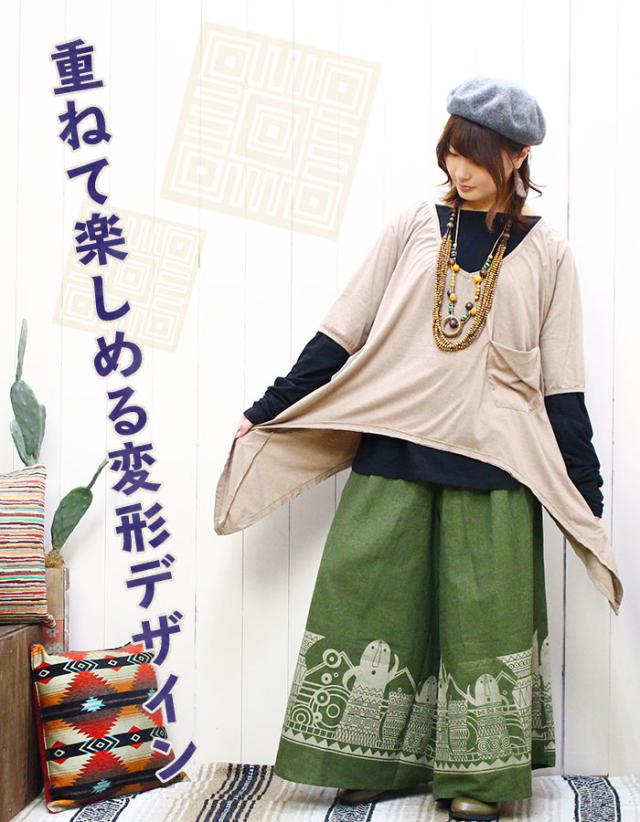 合わせるインナー次第で色んなレイヤードスタイルを楽しめるユニークアイテムです。