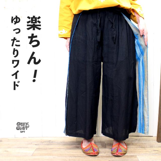ワイドパンツ イージーパンツ ゆったり コットン レディース 【SPT】 サイド スリット ワイド レイヤード パンツ 2025年春夏