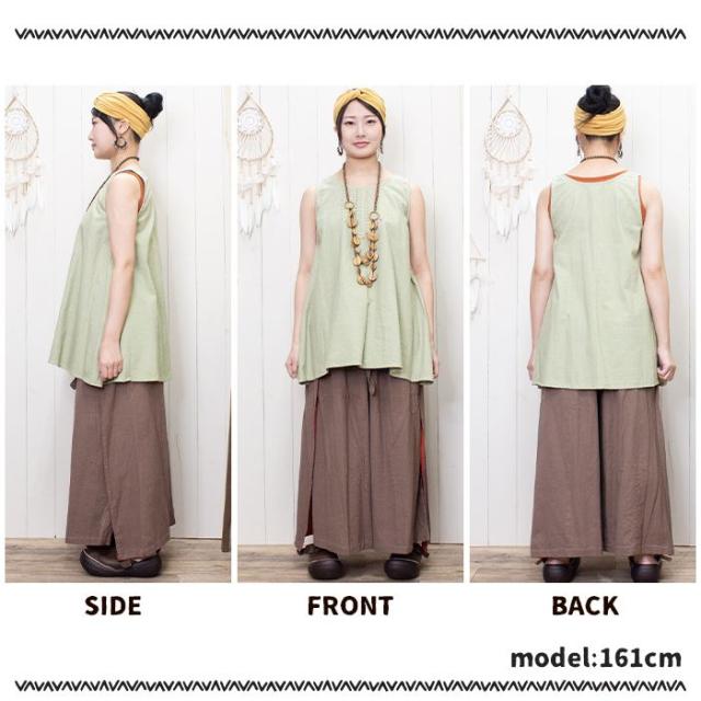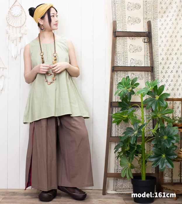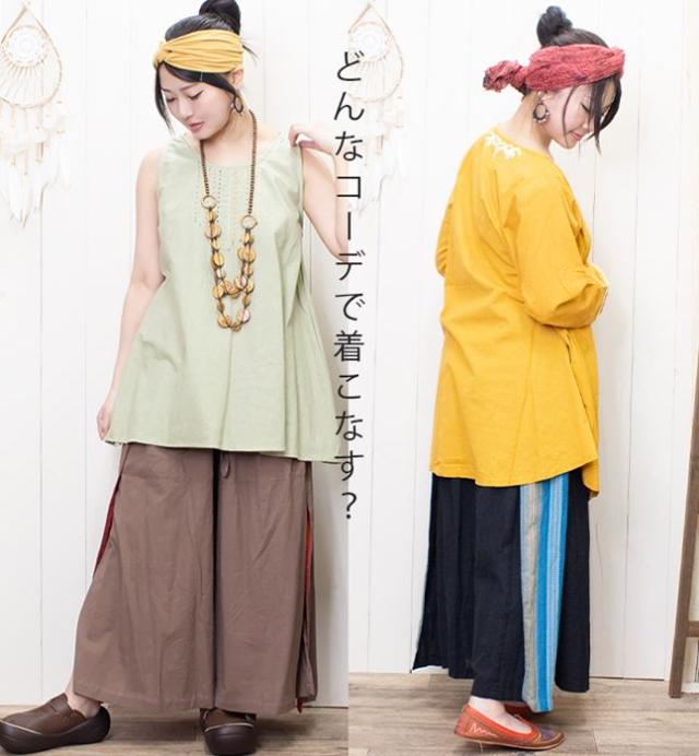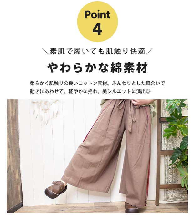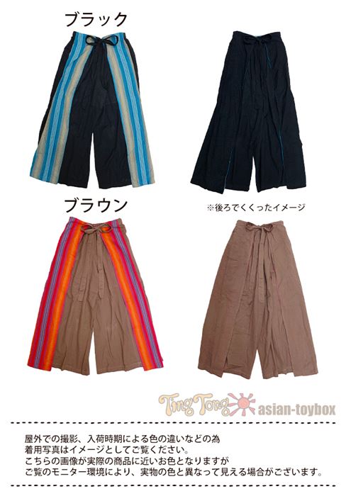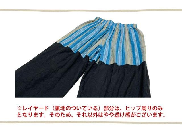 丈 88cm ウエスト (ゴム)64-116cm ヒップ 約140cm 股上 32cm 股下 63cm わたり幅 42cm スリット 50cm ベルトリボン 約70cm