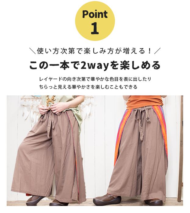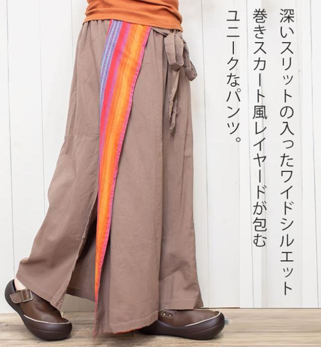 巻きスカート風レイヤードが包む、ユニークなパンツ。