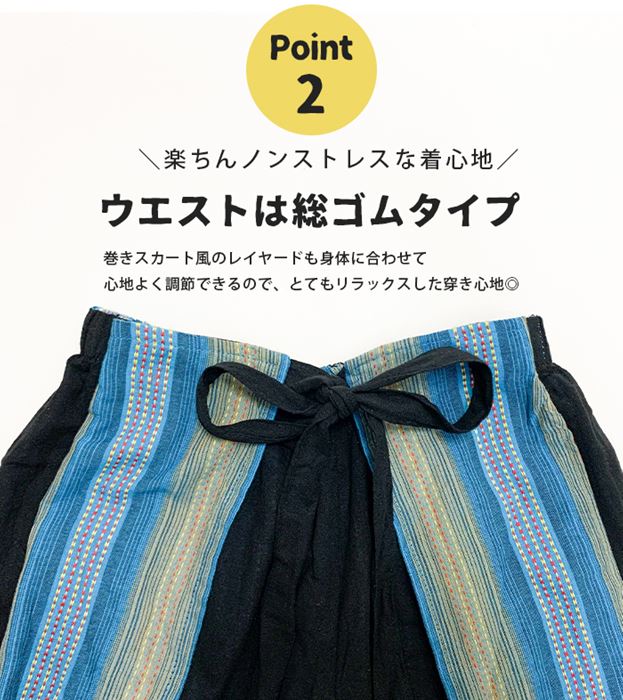 ウエストは総ゴムで楽々♪巻きスカート風のレイヤードも