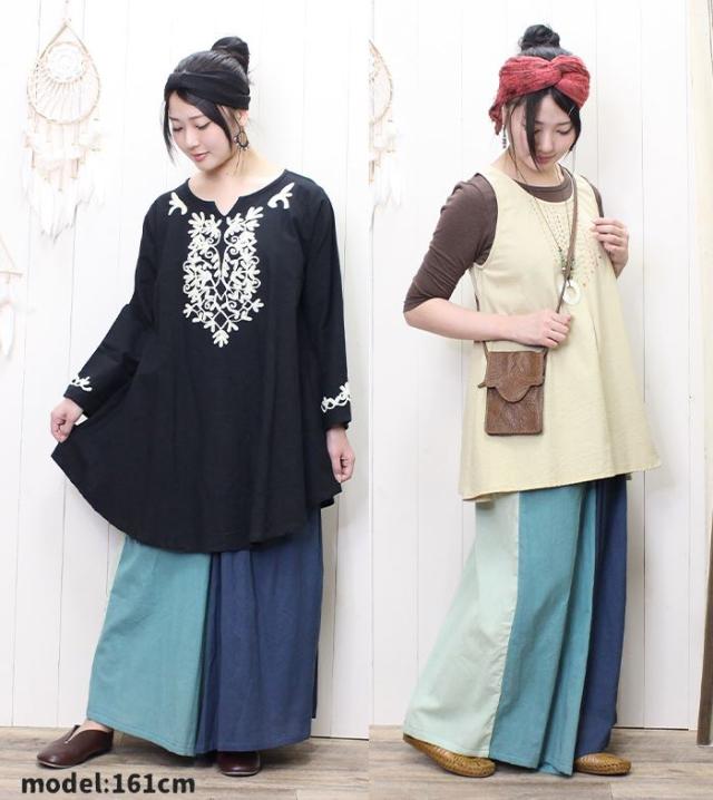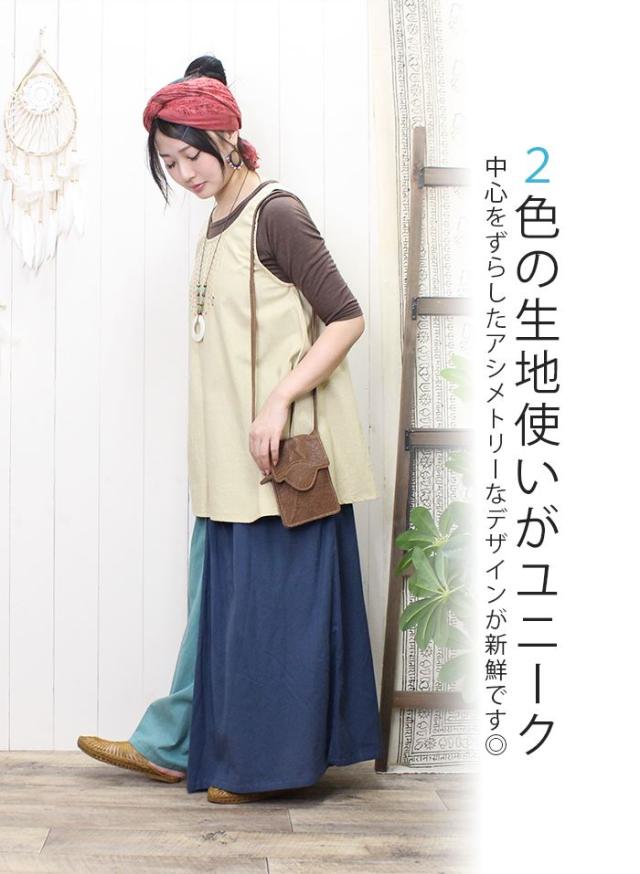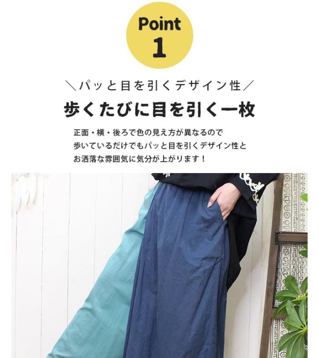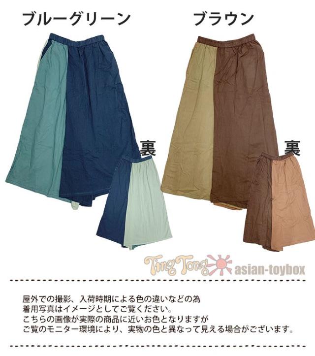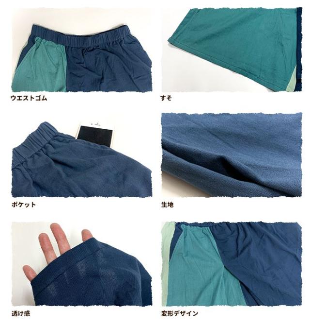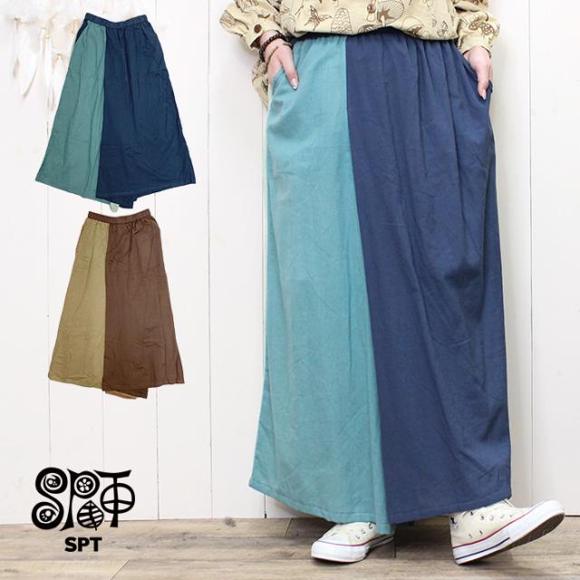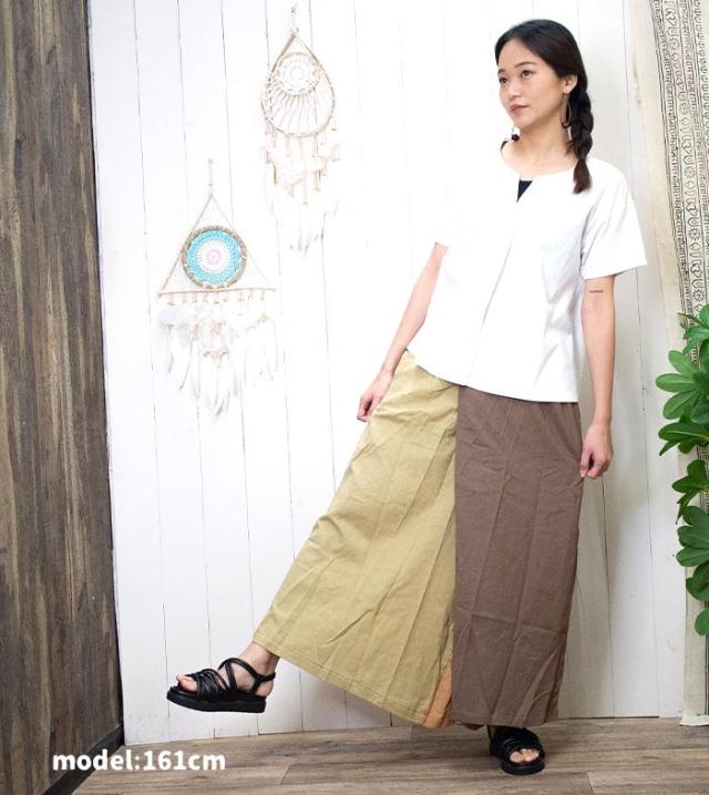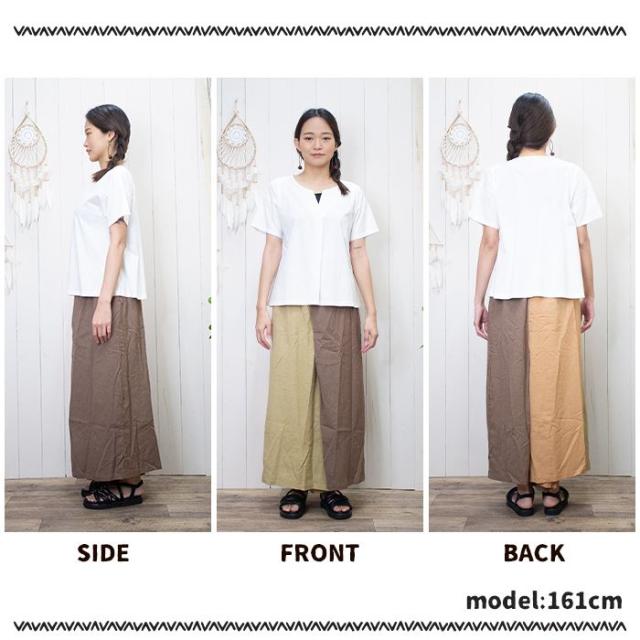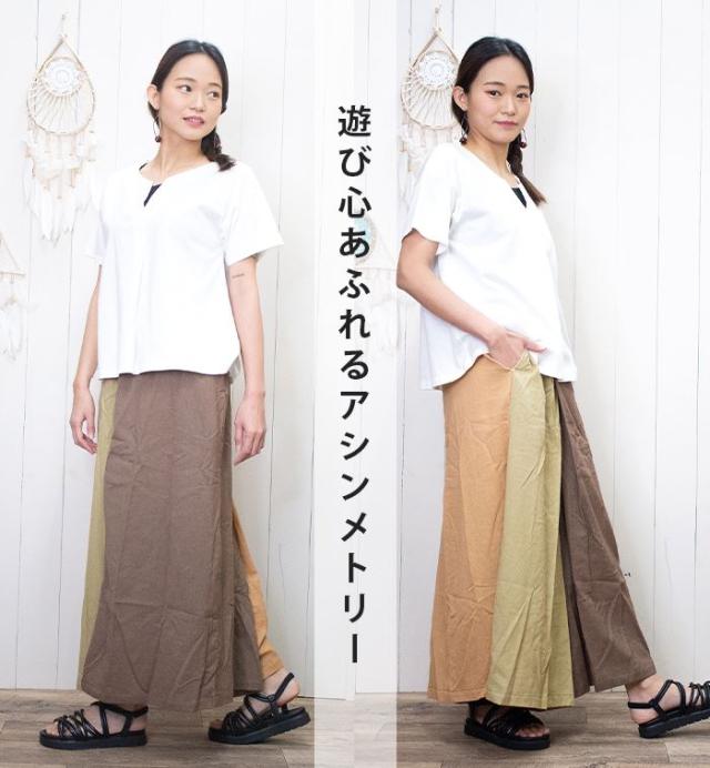 ワイドパンツ ロング フレア イージー ガウチョ レディース 【SPT】 バイカラー アシメトリー ワイド パンツ 2025年春夏