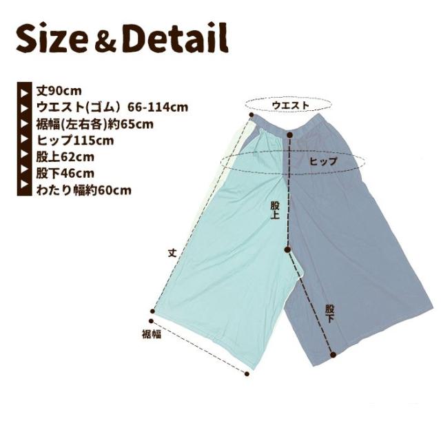 丈 90cm ウエスト (ゴム)66-114cm 裾幅 (左右各)約65cm ヒップ 115cm 股上 62cm 股下 46cm わたり幅 約60cm