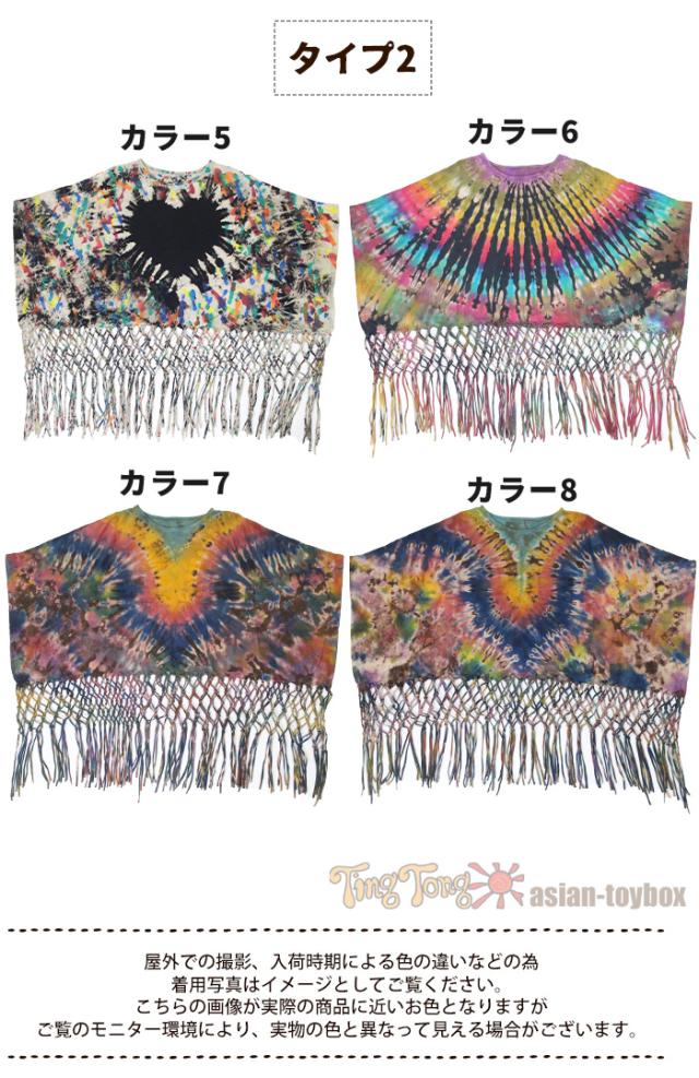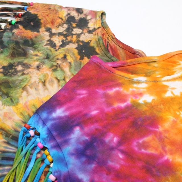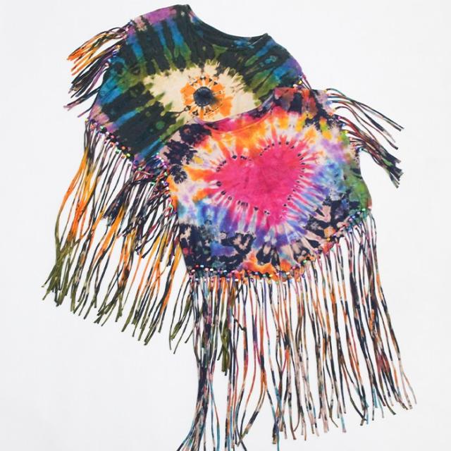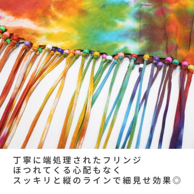 鮮やかなタイダイと長めのフリンジが
