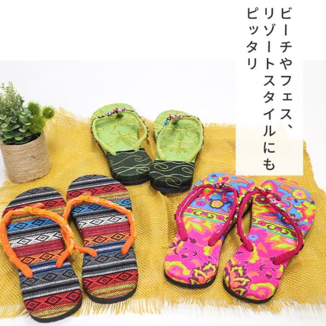 ビーチサンダル ビーサン レディース プチプラ 激安 !エスニックトングサンダル サンダル 鼻緒 夏 カラフル 夏フェス