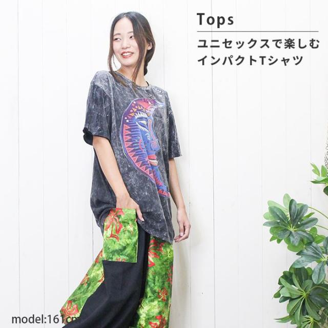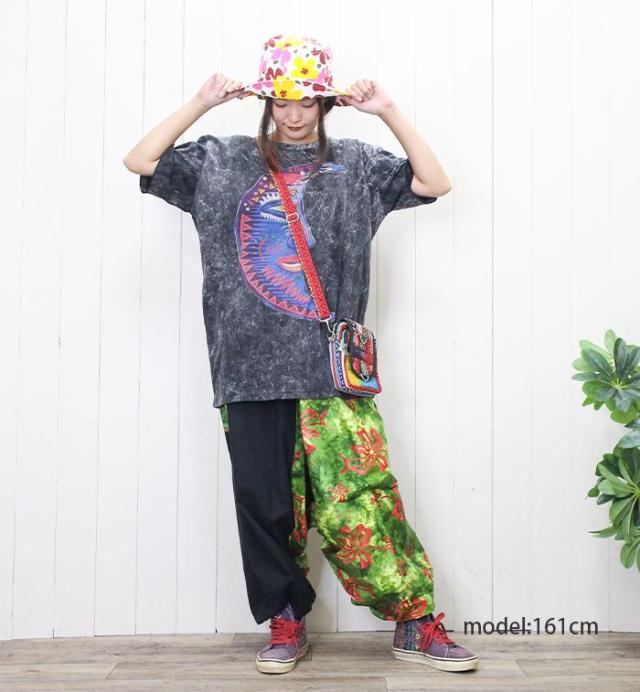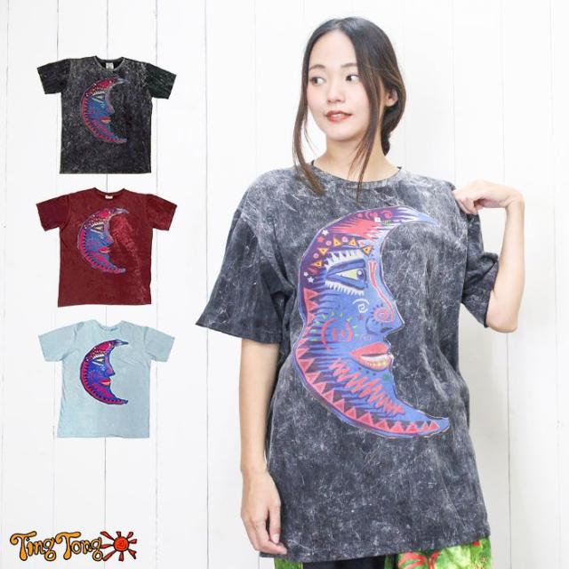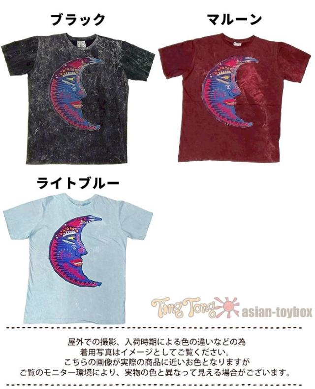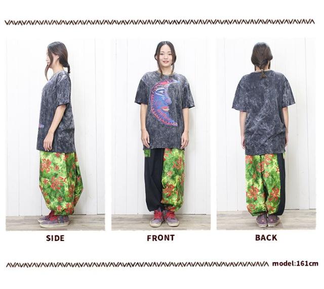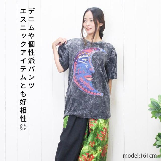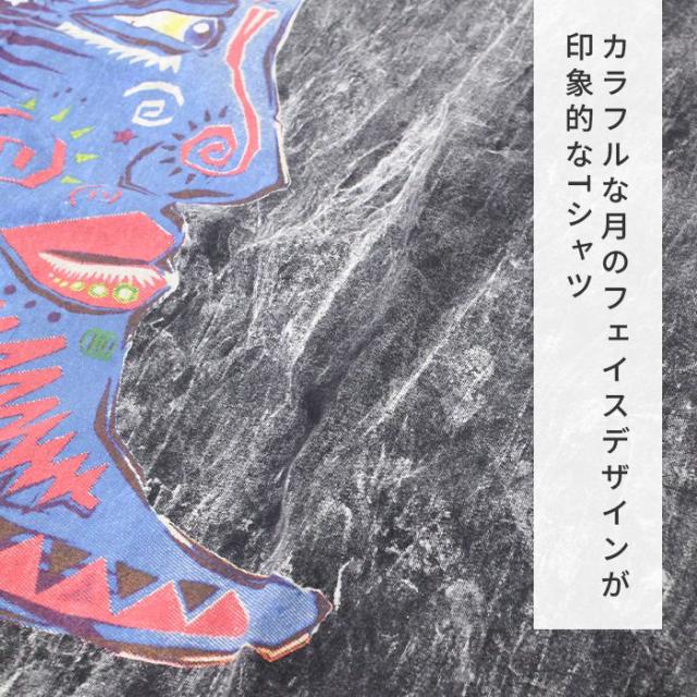 古着風 ストリート ユニセックス ビッグシルエット フェスファッション !ムーンフェイスアート調Tシャツ 個性派 ヒッピー エスニック 大きめ 男女兼用