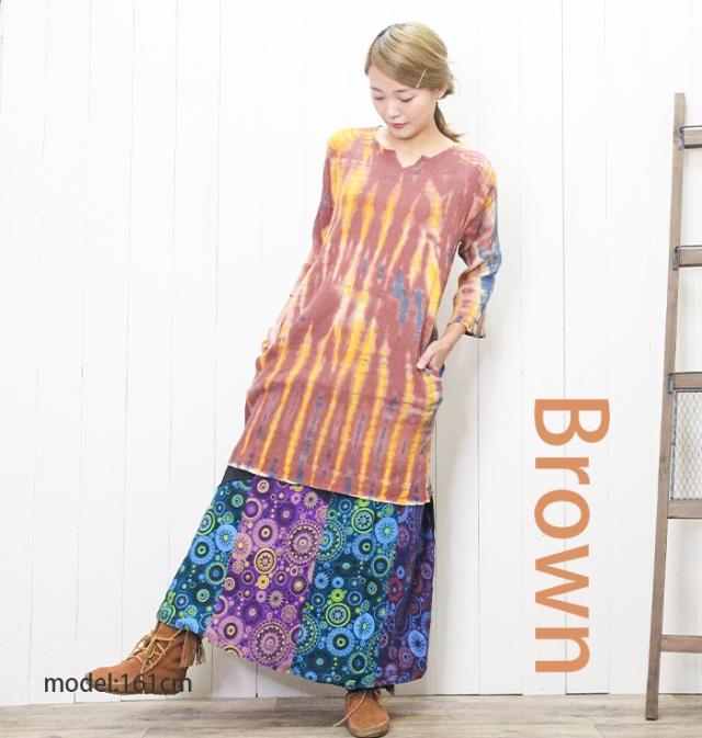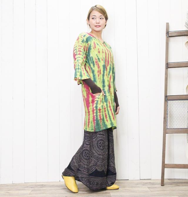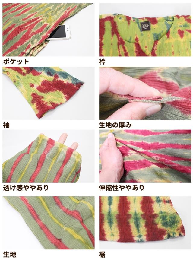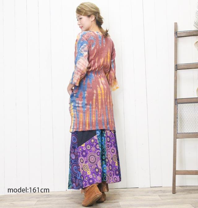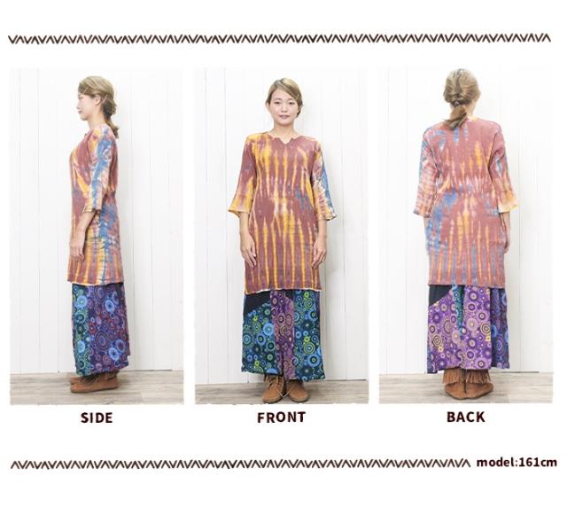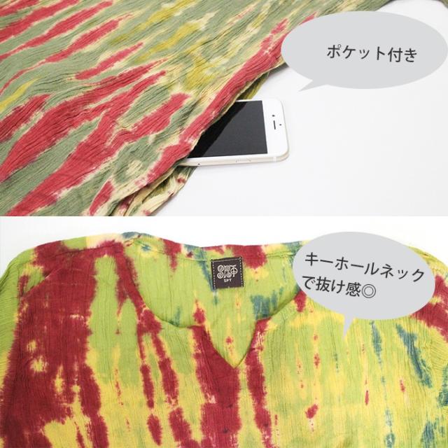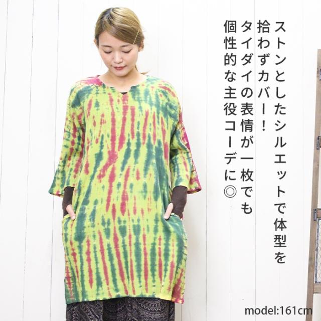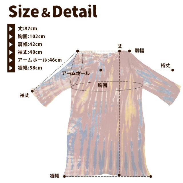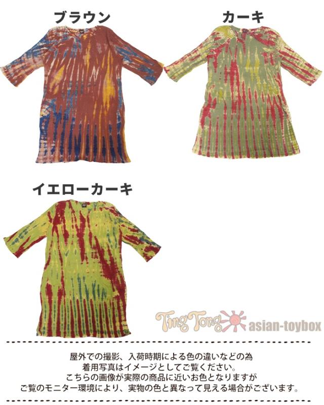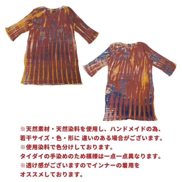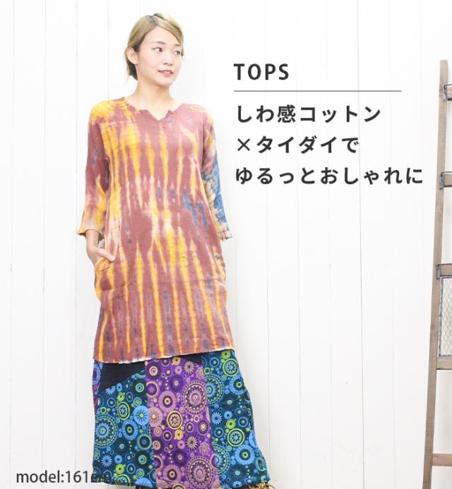 エスニック タイダイ トップス ブラウス ワンピ 【SPT】タイダイクレープ コットン 7分袖 チュニック 春 夏 秋 しわ感