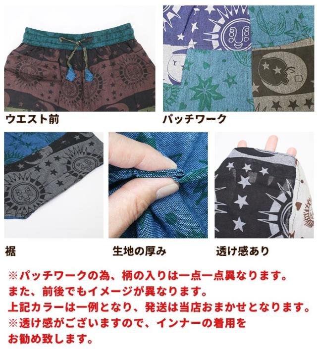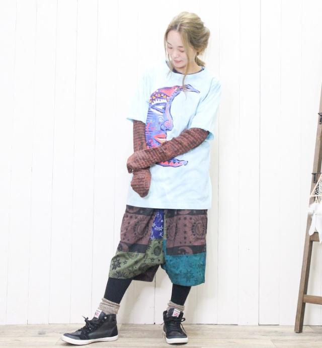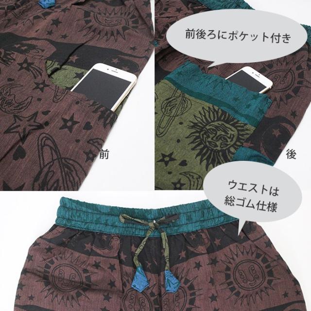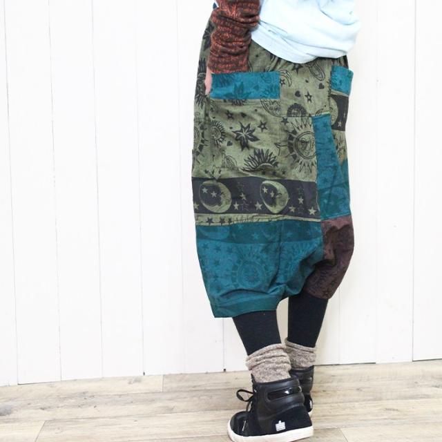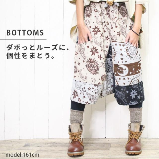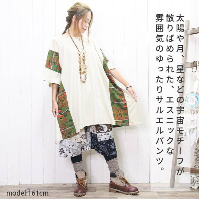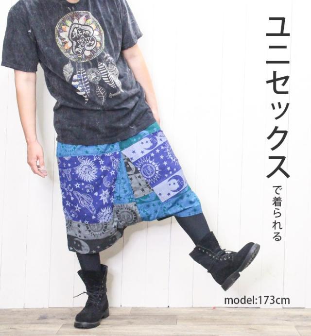 サルエルパンツ ワイドパンツ コクーンシルエット エスニック ユニセックス 【SPT】スペースパッチはんぱ丈サルエル ストリート カジュアル アウトドア フェス ルームウェア