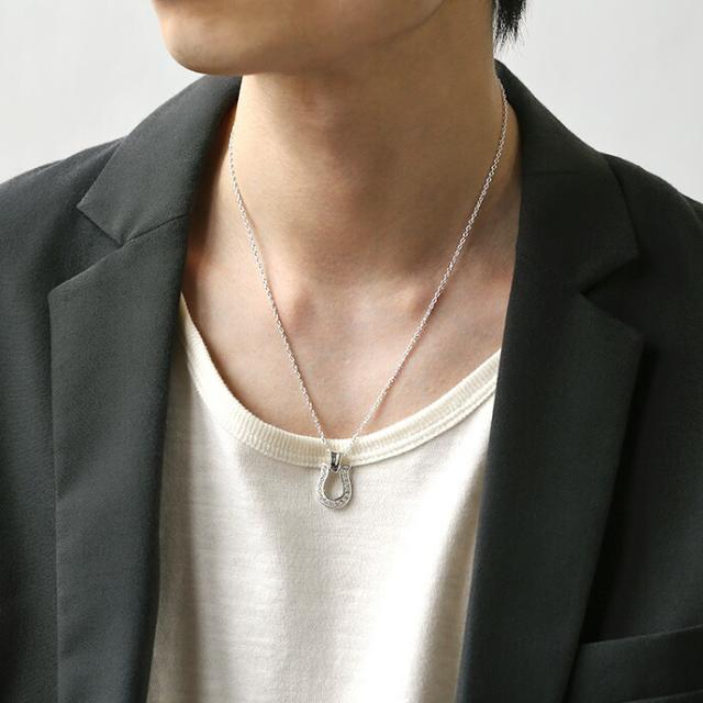 ジルコニア カーブ ホースシューペンダント(シルバーカラータイプ)(トップのみ) ネックレス メンズ 馬蹄 シルバー925 アクセサリー bap-01-221-top-si