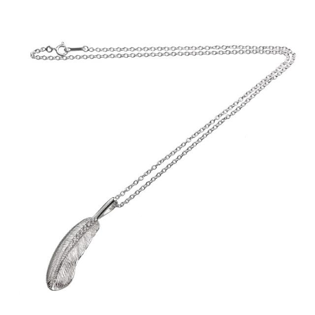 ■商品名:ナチュラルフェザーペンダント ネックレス メンズ (2mmアズキチェーン付きセット) シルバー925 アクセサリー ウイング フェザー 羽 翼 シルバーペンダント